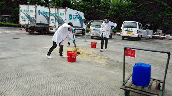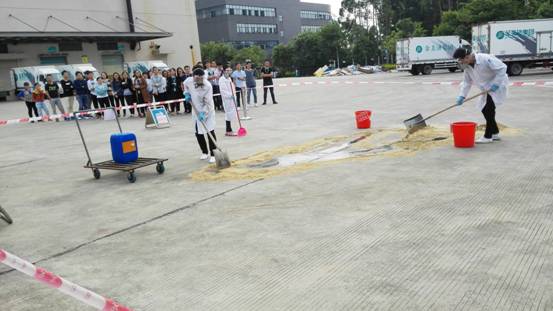 演练场地划分为演练区和观摩区 ,设置了演练情景所需的标识,如物资区、泄漏点、吸附物收集桶等 。演练开始前 ,演练控制组成员、设备部EHS工程师阳芳阐述了本次活动的目的和意义。本次活动主要针对药业公司剧毒化学品使用安全事故特点和可能发生的事故类型,贯彻落实“安全第一、预防为主、综合治理"的方针,以提高应急救援组织指挥协调能力、应急救援队伍应急处置能力而开展。QC部、QA部、研发部 、生产物控部全体人员到场观摩了本次演练。